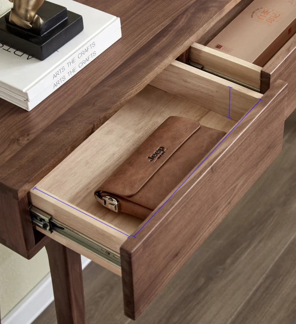 Dotato di tre cassetti funzionali, questo tavolo offre ampio spazio per riporre chiavi, posta e altri oggetti essenziali, mantenendo il tuo spazio organizzato e ordinato.