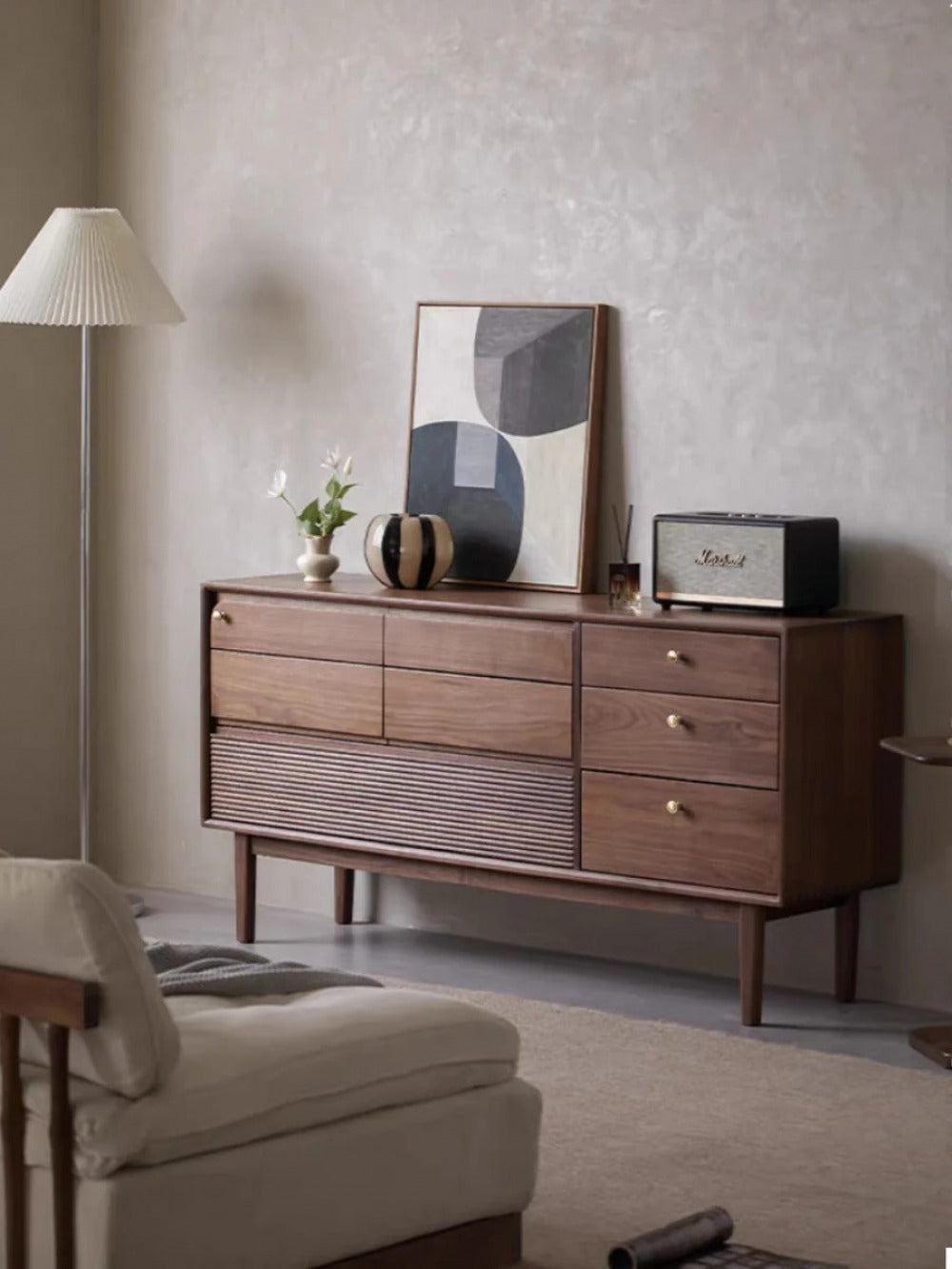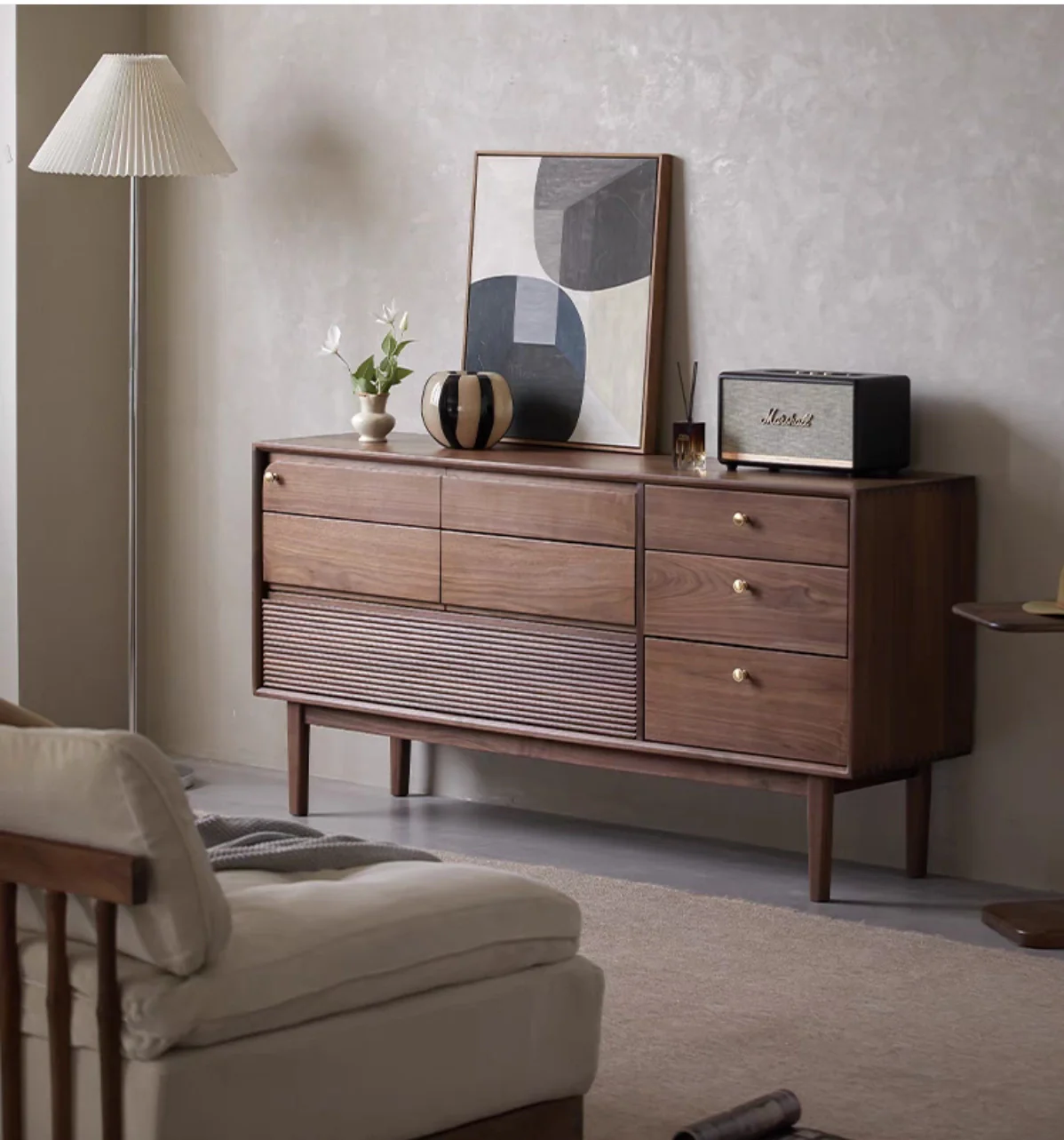 Glamour Multi-Drawers Black Walnut Wood Sideboard