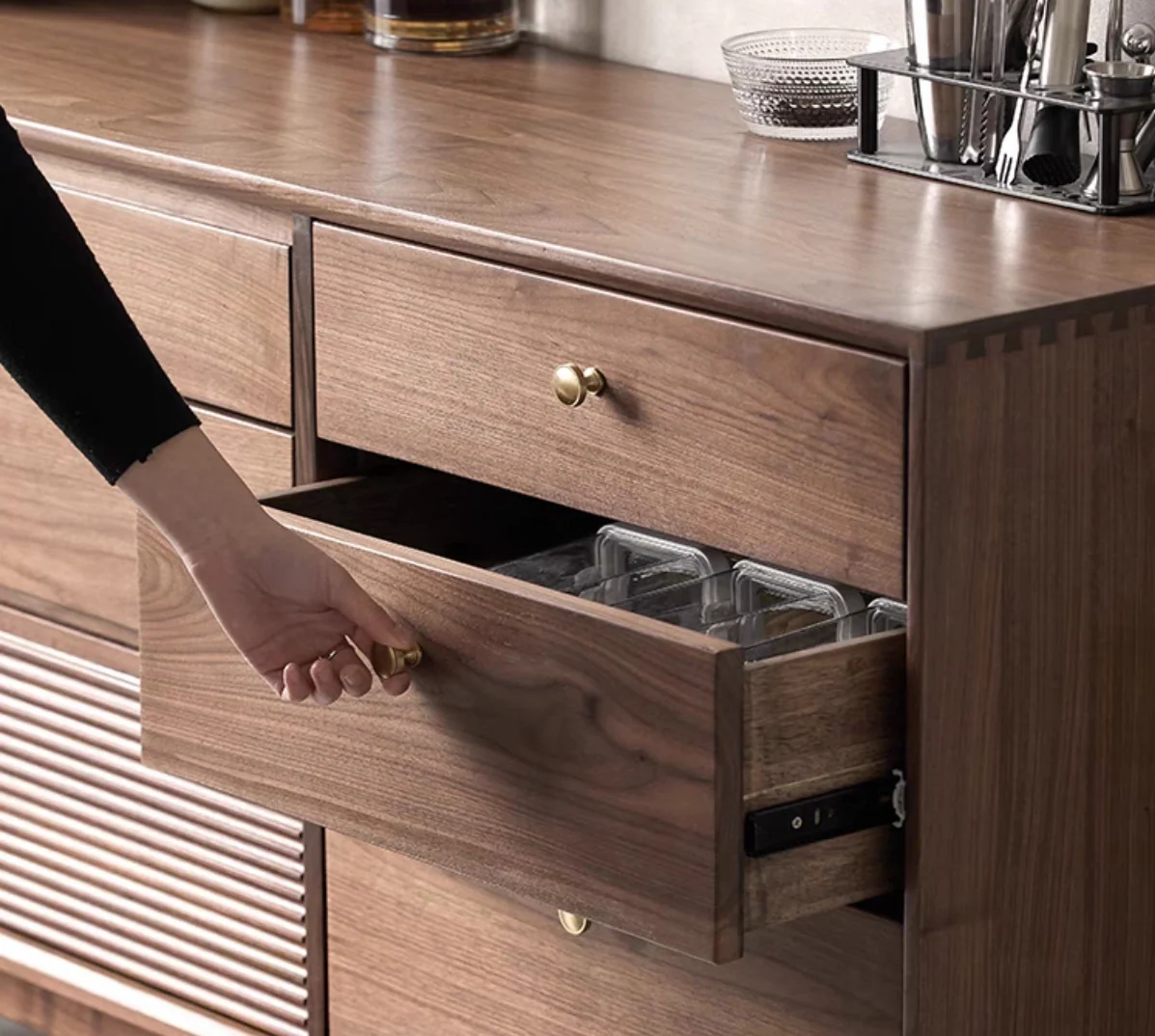 The Glamour Multi-Drawers Black Walnut Wood Sideboard is an excellent choice for those seeking a stylish and efficient storage solution. Its exceptional craftsmanship and elegant design make it a standout addition to any space.